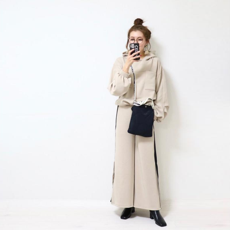 【2点セット】ナチュラル シンプル 長袖 フード付き 無地 パーカー+配色 ポケット付き レギュラーウエスト パンツ セットアップ
