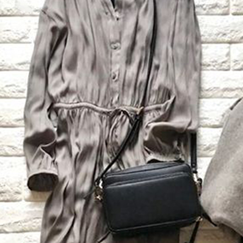 女っぽさが漂う エレガント ハイウエスト 無地 Vネック 長袖 ボウタイ ワンピース