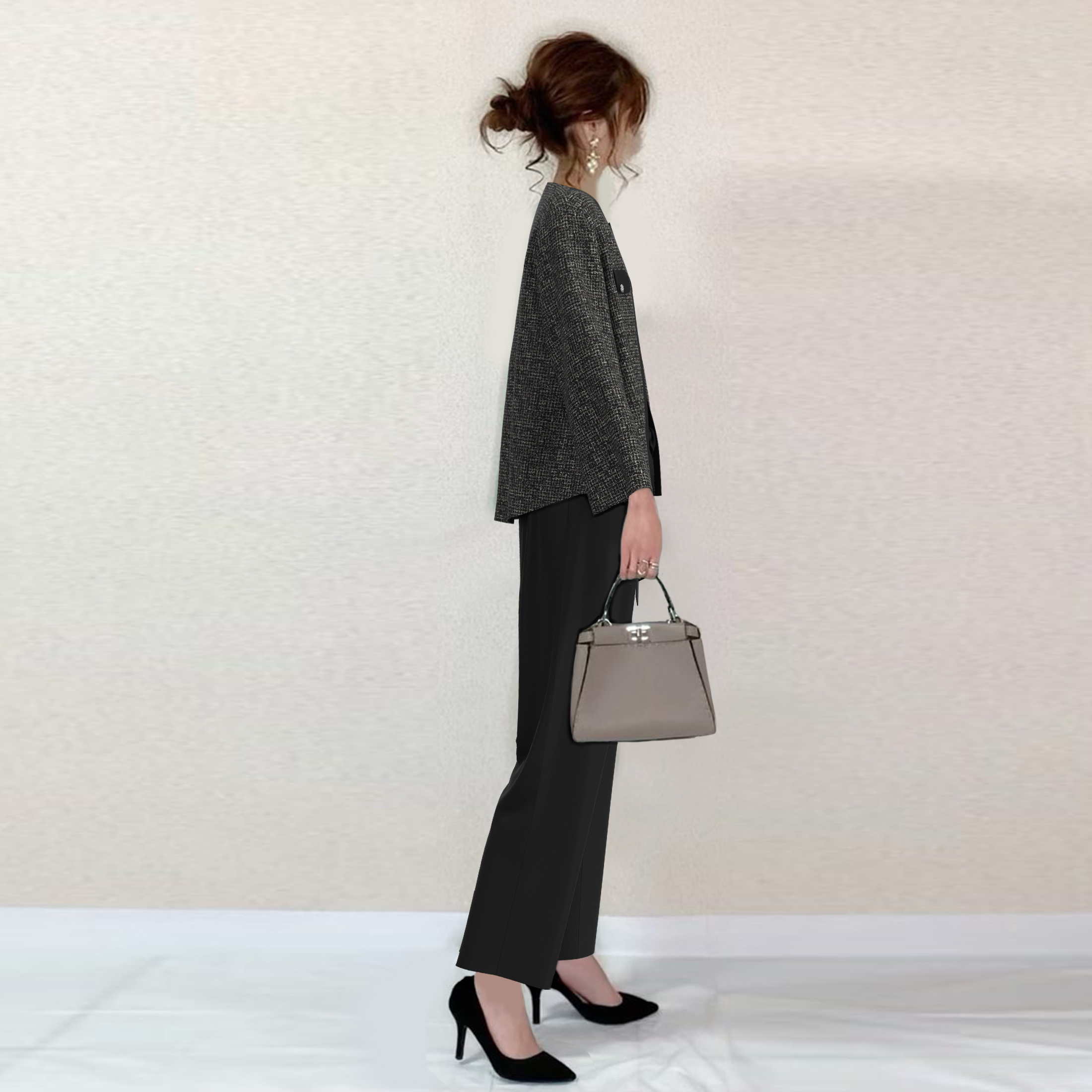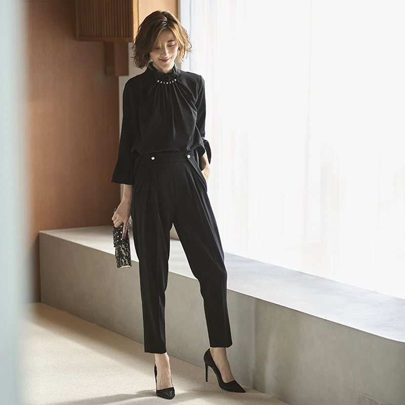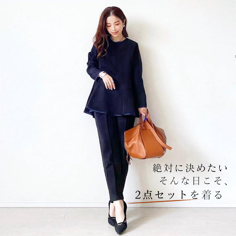 入園・入学・卒園・卒業式 ママスーツ【再入荷予定】大流行新作 ラウンドネック定番エレガントトップス+無地レギュラーウエストパンツセットアップ