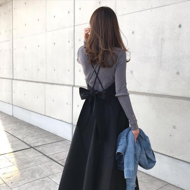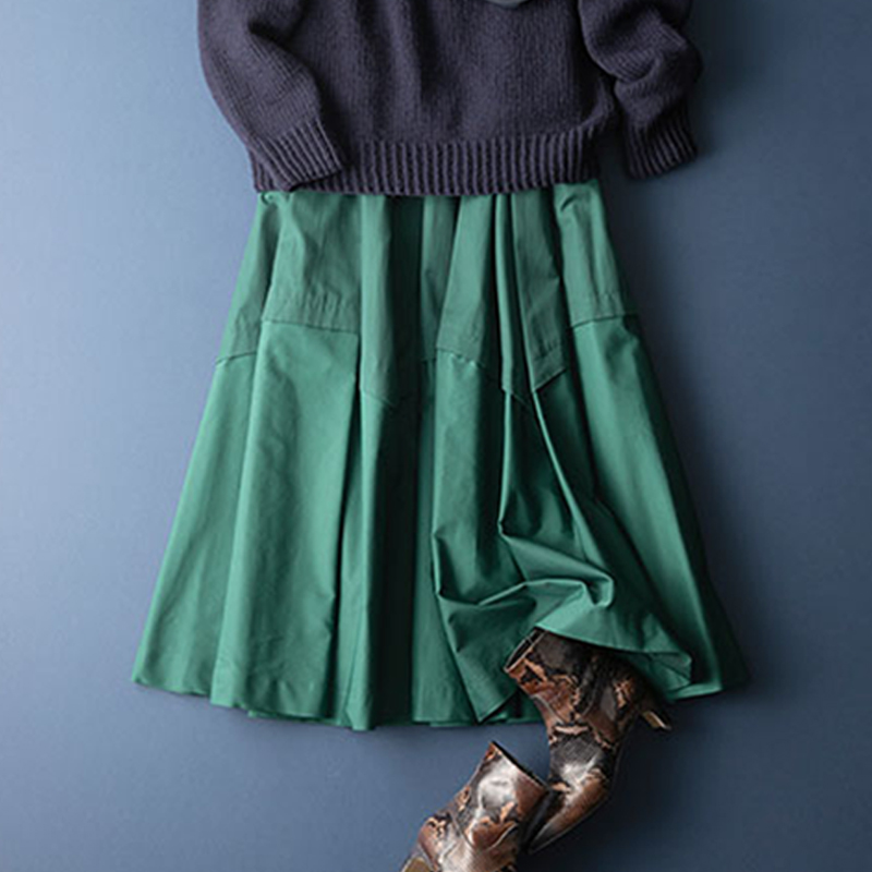 二点セット プファッショナブル ナチュラル 無地 ニット+ギャザー Aライン スカート セットアップ