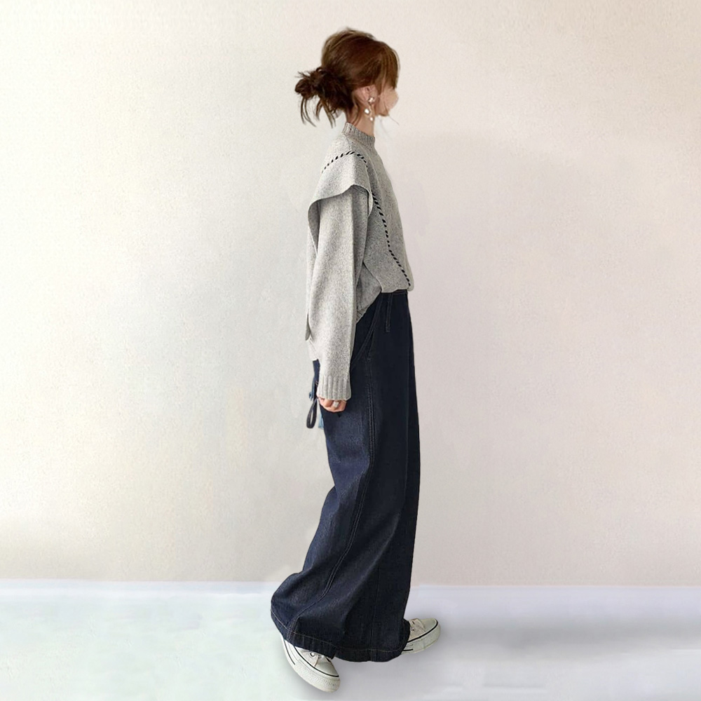 柔らかくて優しい印象 シンプル ラウンドネック 無地 レイヤード ナチュラル カジュアル ニット・セーター