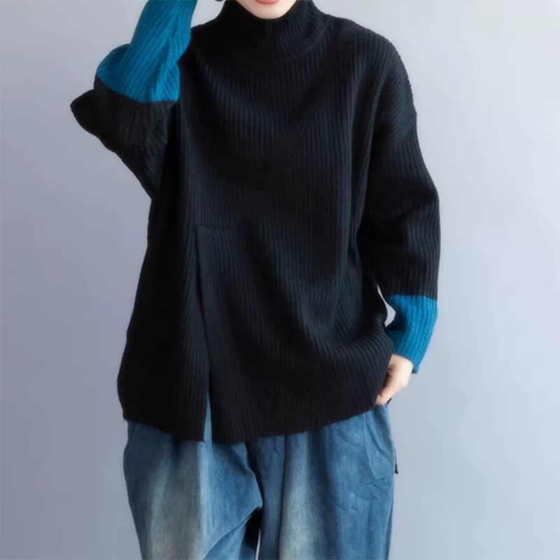 ハイネック 配色 長袖 ニット トップス