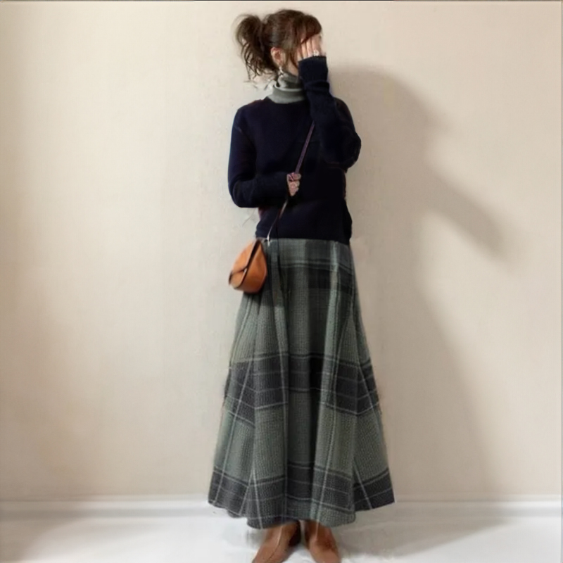 女っぽさが漂う カジュアル 配色 Aライン スカート