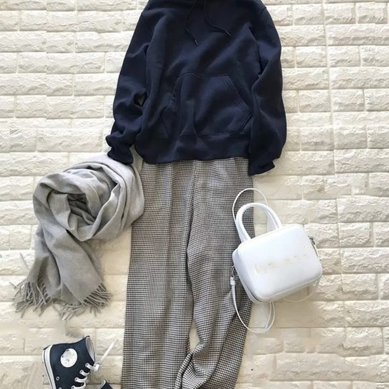 人気高い シンプル フード付き 長袖 パーカー スカート 配色 スリット 2点セット