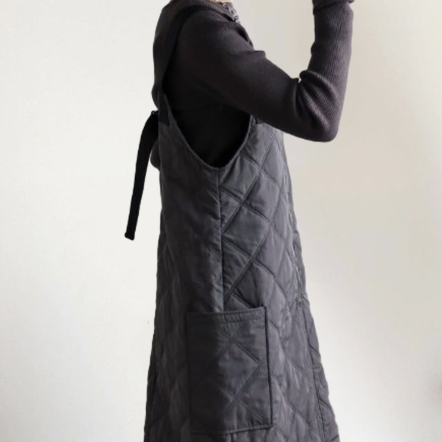 高級感 シンプル ポケット付き ファスナー 無地 長袖 ジャンパースカート