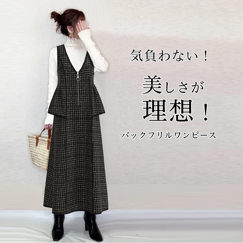 女っぽさが漂う カジュアル ファスナー Vネック ノースリーブ ボウタイ チェック柄 ジャンパースカート