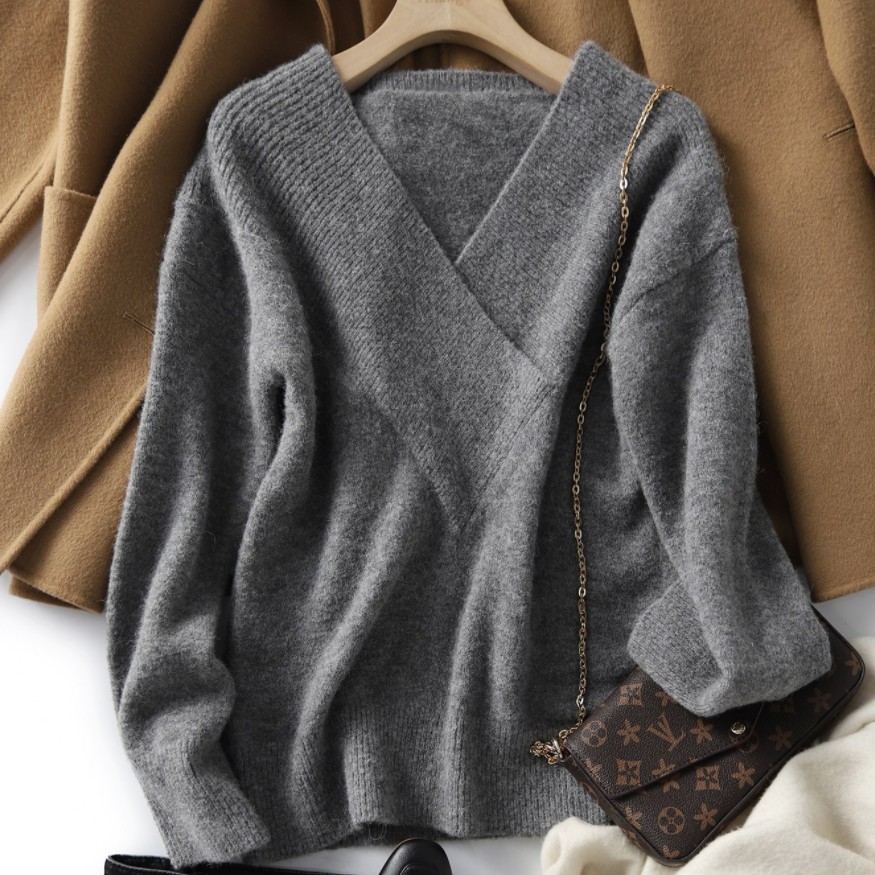 肌触りよく 無地 クロス ホルター ネック 長袖 シンプル フェミニン ニット