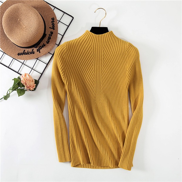 ハーフネック ファッション プルオーバー 無地 シンプル 長袖 ニット・セーター