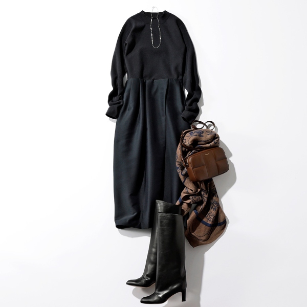 絶対流行 プルオーバーラウンドネックランタンスリーブ長袖ニットワンピース