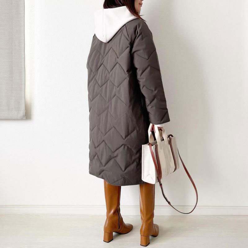 【再入荷予定】高見えデザイン シンプル レディース ラウンドネック ポケット付き 秋冬 綿入れコート