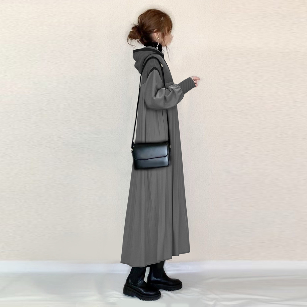 フード付き 切り替え シンプル ストレートスカート ギャザー 無地 レディース カジュアルワンピース