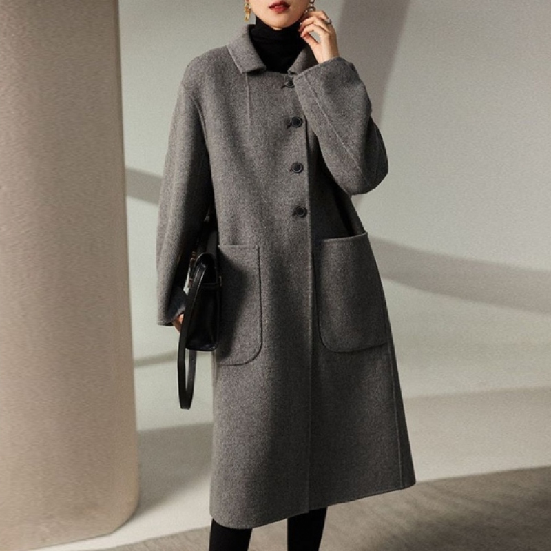 気質アップ無地 シングルブレスト中長 シンプルファッションチェスターコート