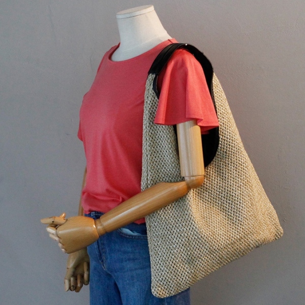 「草編み」 日常 オープン 大容量 ショルダーバッグ
