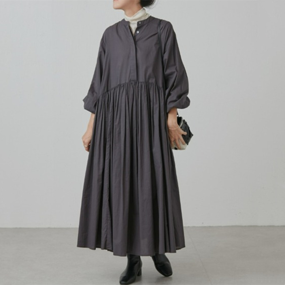 【ワンピース】今だけ超お得 シングルブレスト ギャザー M-L シャツワンピース