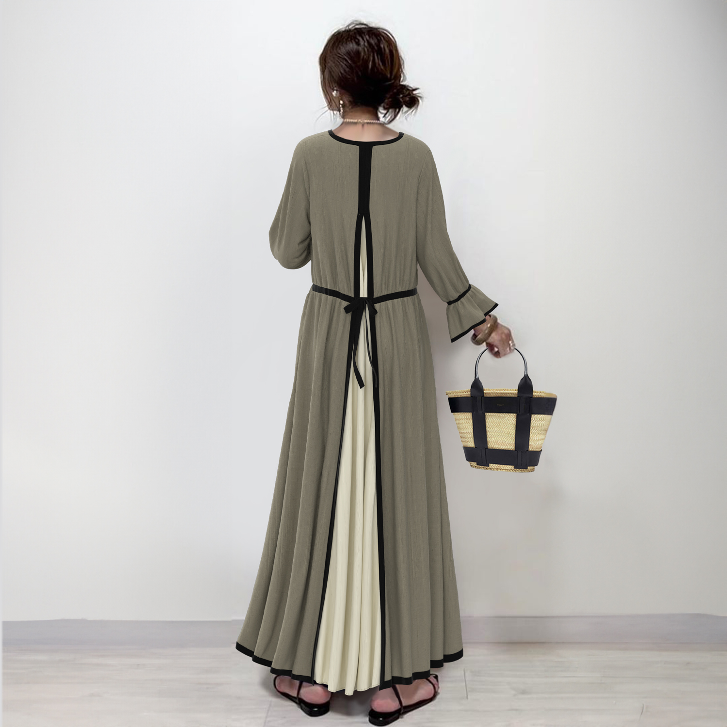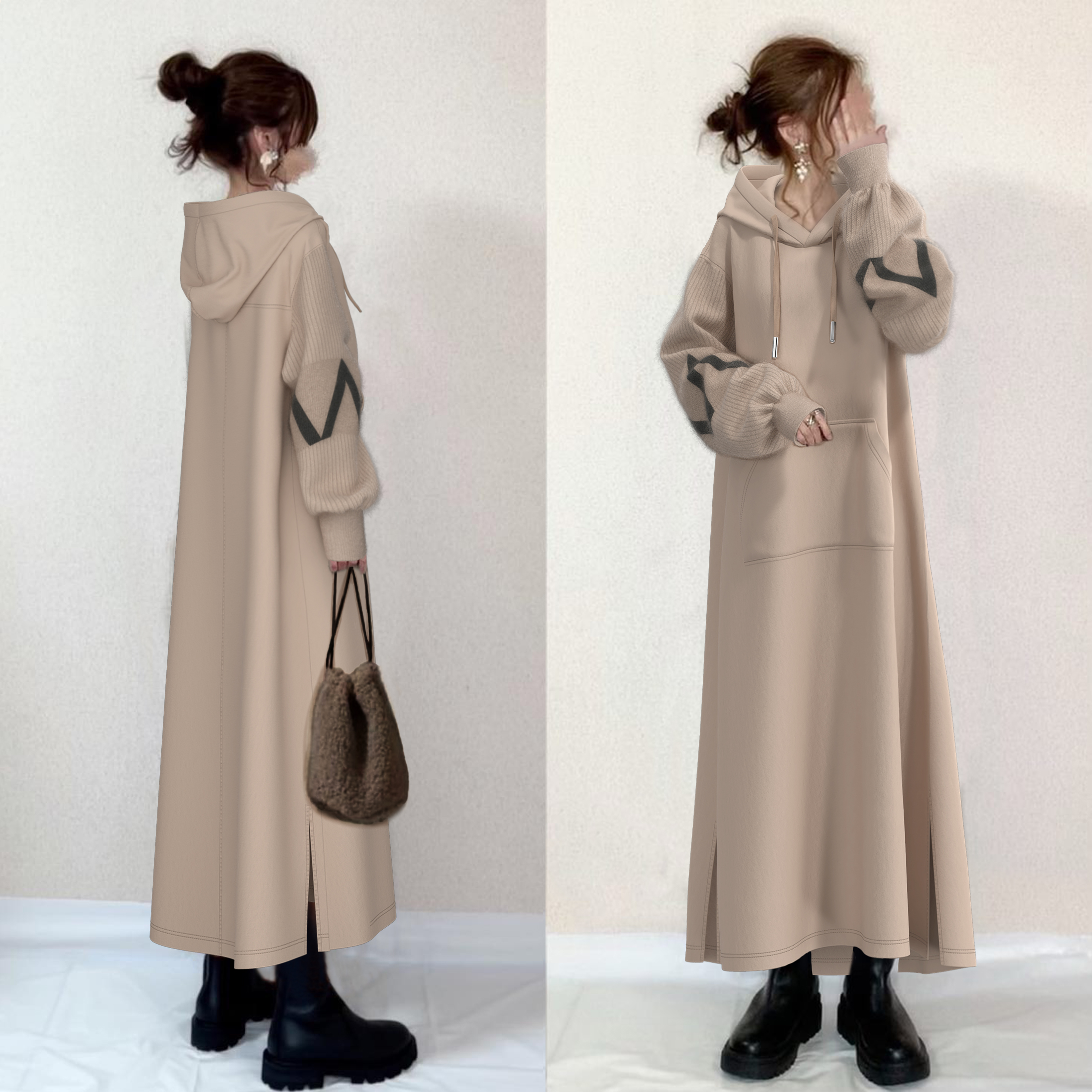 「スリット」ナチュラル フード付き ストレートスカート 無地 ギャザー カジュアルワンピース