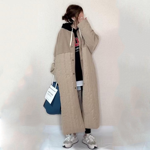 「配色」 シンプル カジュアル ナチュラル 長袖 ラウンドネック コート