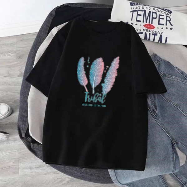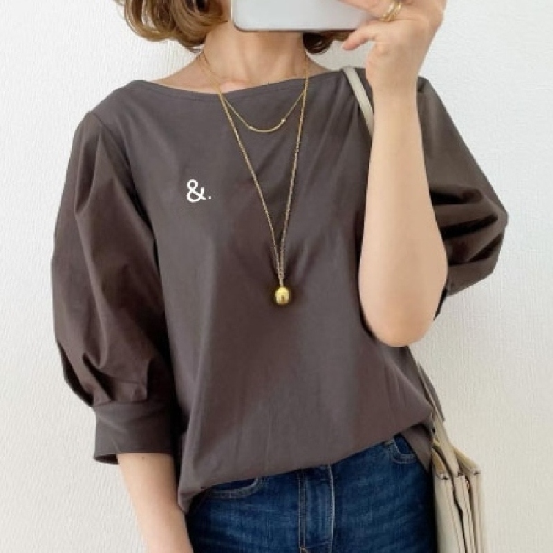 「プリント」大きめのサイズ感 五分袖 ラウンドネック シンプル 中長 Tシャツ