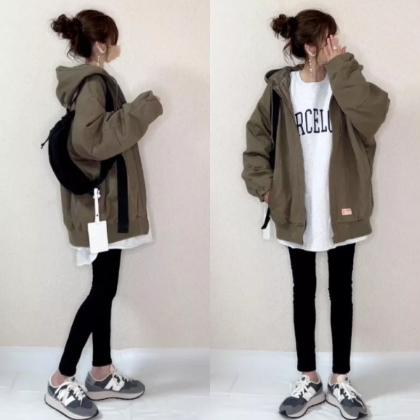 「フード付き」ビックシルエット ファスナー クローズドバック コーヒー コート
