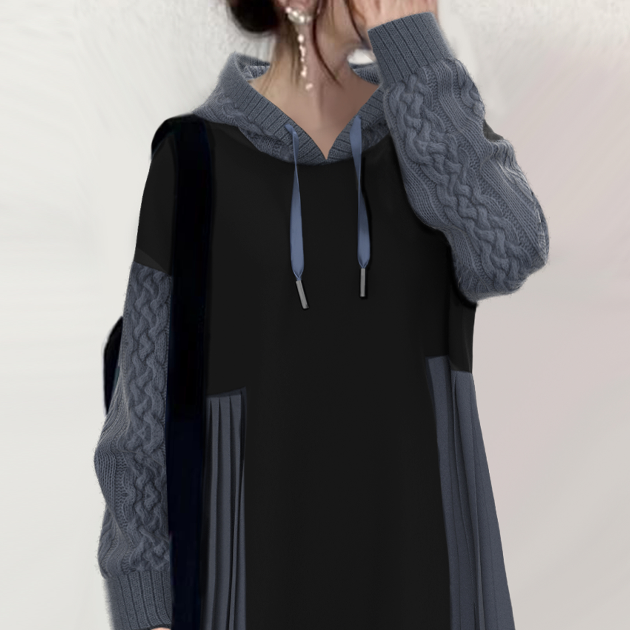 「ギャザー 」配色 フード付き 切り替え シンプル 長袖 ストレートスカート カジュアルワンピース