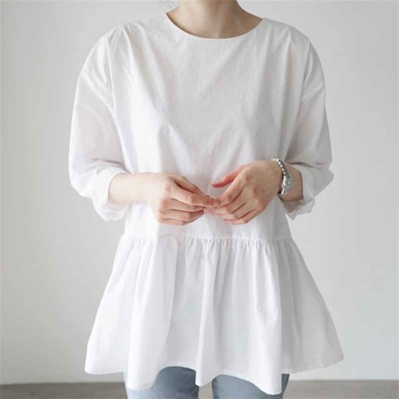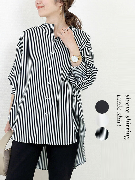 エステルローン袖 シャーリング カジュアル チュニック シャツ