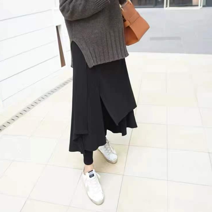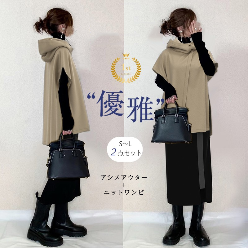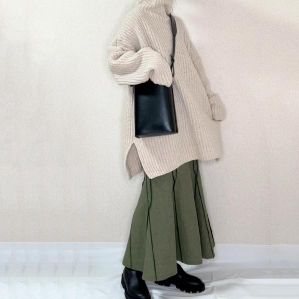 「Aライン」スリット 秋冬 ハイネック 無地 シンプル レギュラーウエスト カジュアルセット