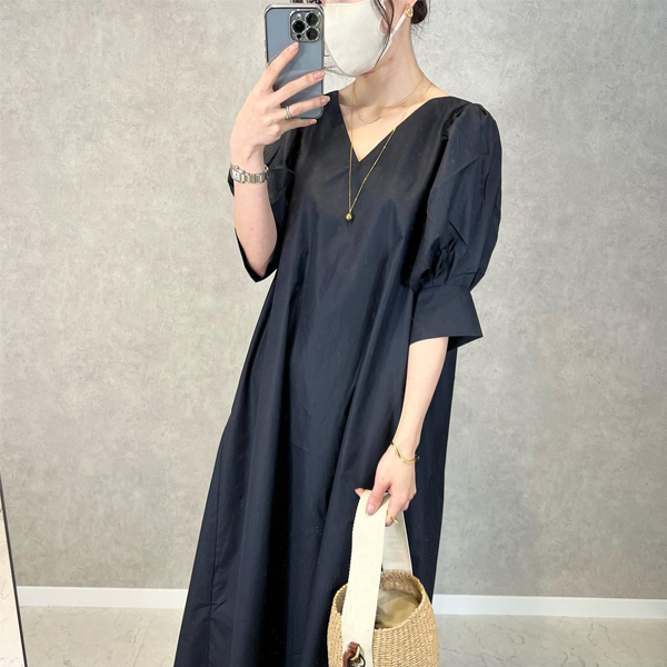 「ギャザー」 キレカジ 無地 Vネック Aライン カジュアルワンピース