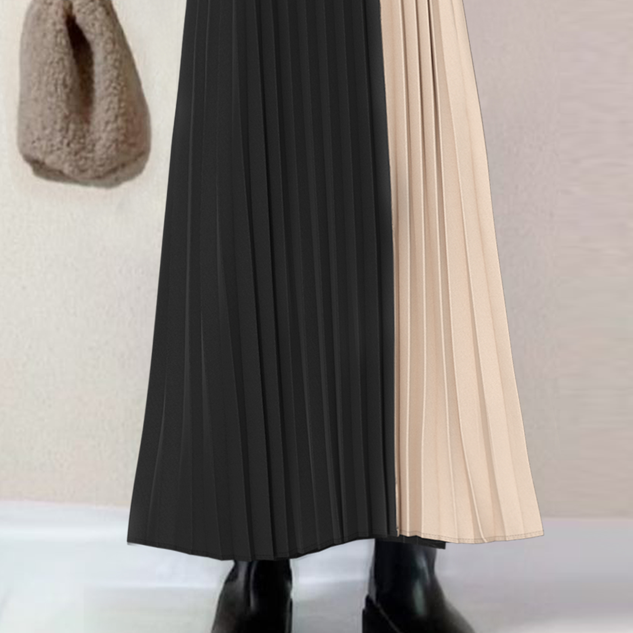 着回し力抜群 配色 プルオーバー ラウンドネック Aライン ハイウエスト ワンピース