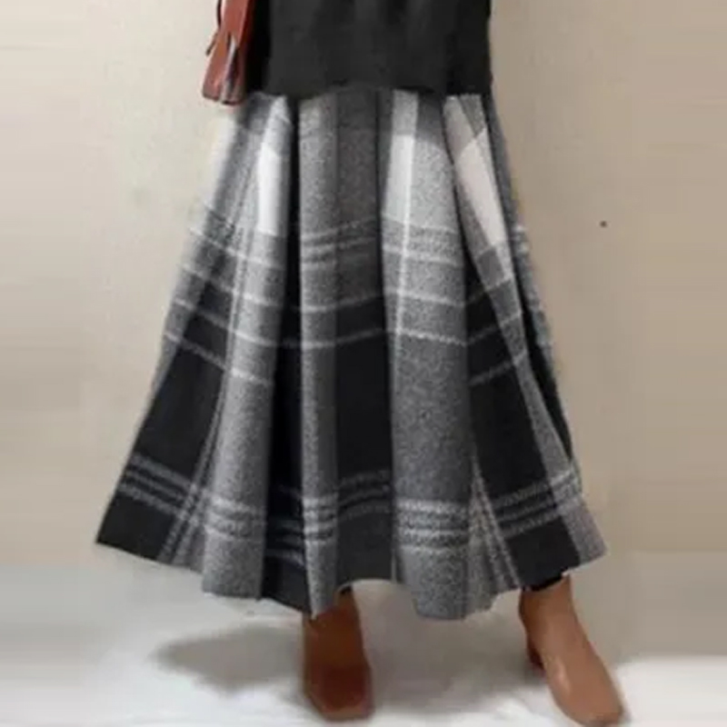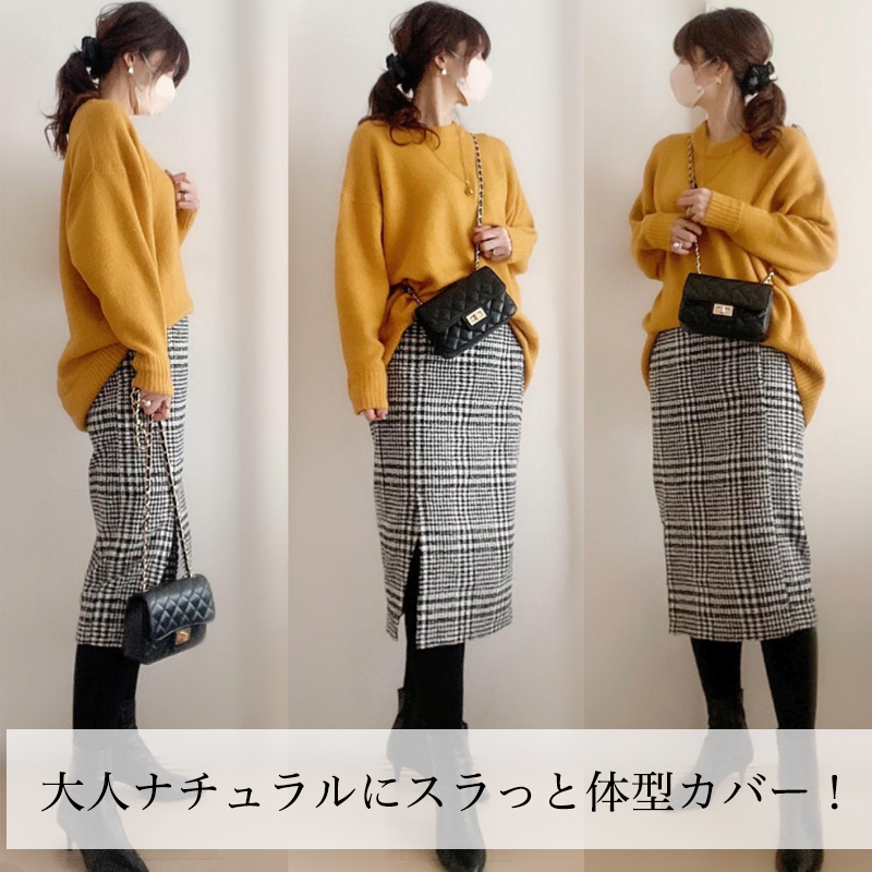 「無地」レギュラーウエスト ストレートスカート チェック柄 スリット 秋冬 フェミニン カジュアルセット