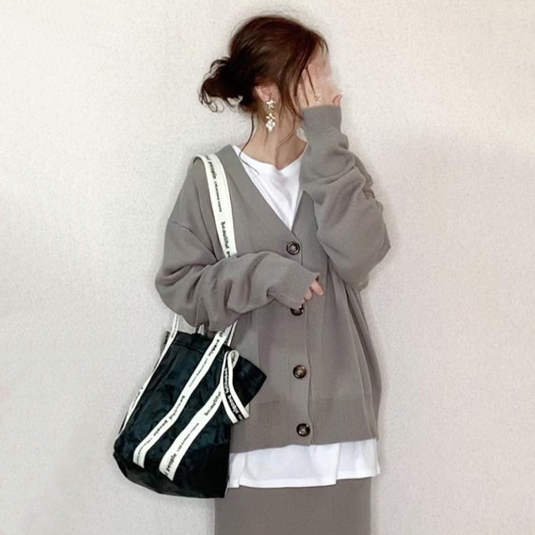 「Vネック」ストレートスカート レギュラーウエスト ボタン 秋冬 シンプル カジュアル ナチュラル カジュアルセット