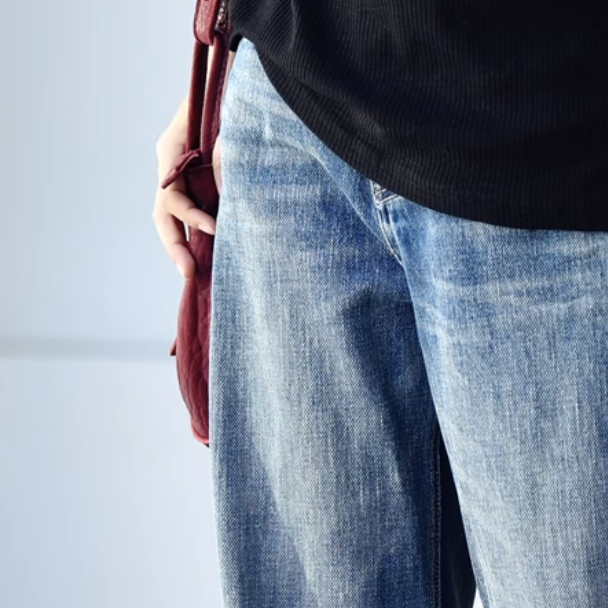 「ルーズフィット」 ファッション ロング丈 ポケット付き ハイウエスト レトロ 品質のいい新品 デニム