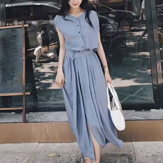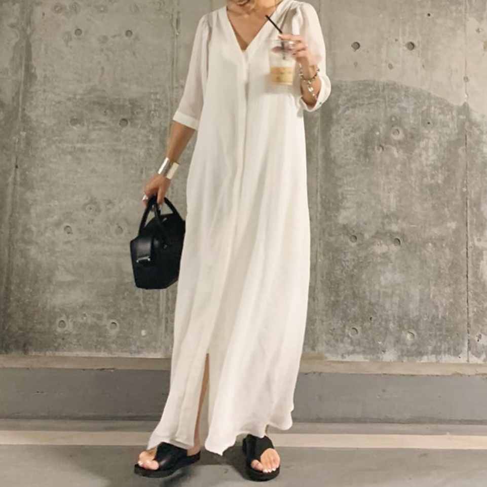 【ワンピース】 ins超人気 存在感 シンプル Vネック スリット ロングワンピース