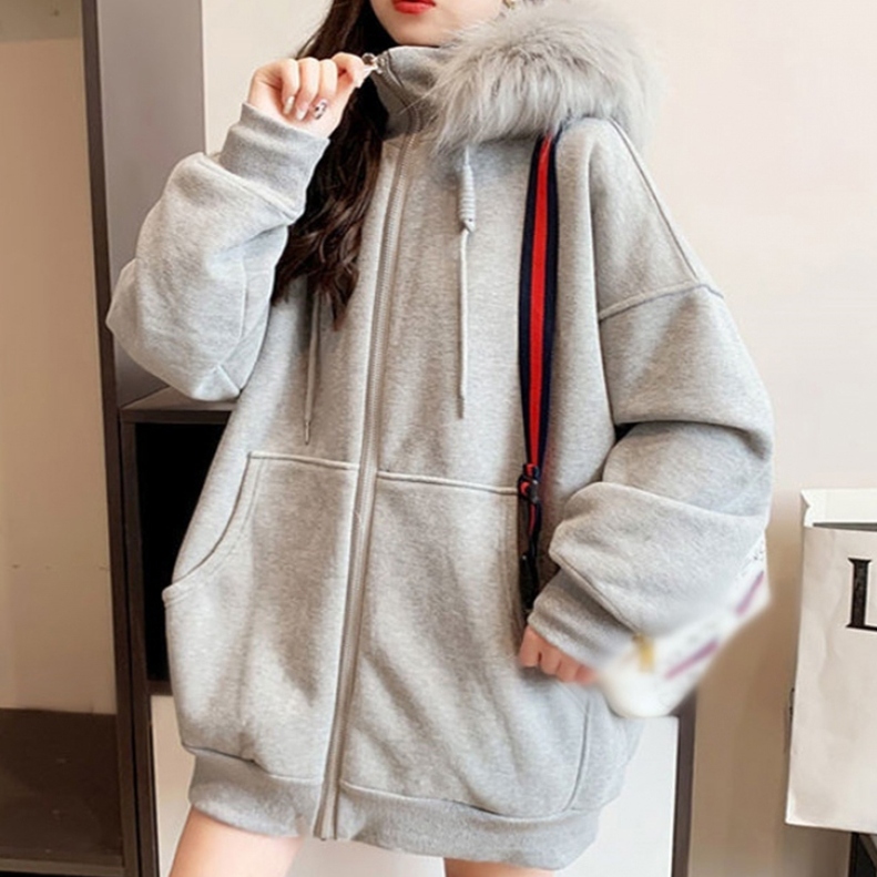 「切り替え」フェイクファー 中長 ファッション シンプル 長袖 フード付き ジッパー 無地 裏起毛 コート