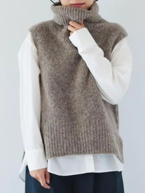 高見えデザイン 無地 スリット ハイネック シンプル ノースリーブ ベスト ニット セーター