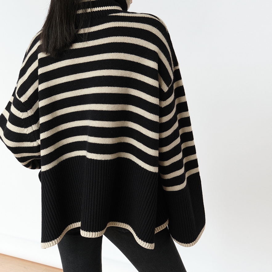 人気新作ボーダープルオーバーファッションハイネックセーター