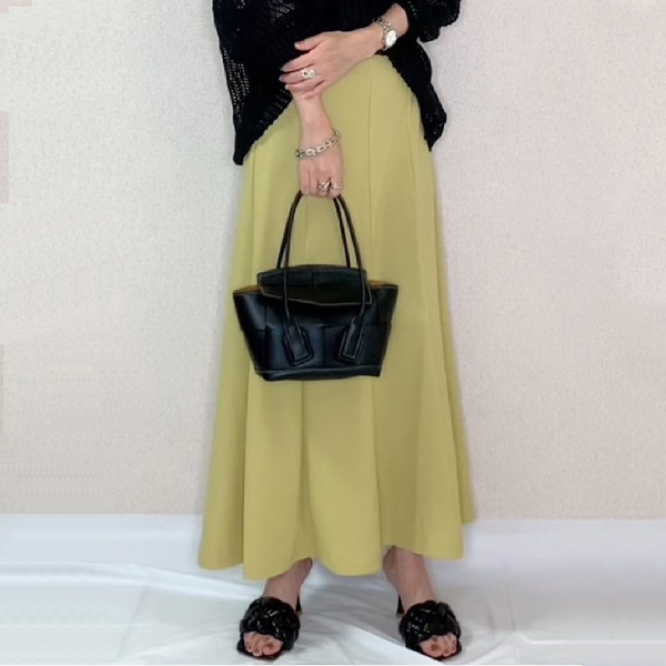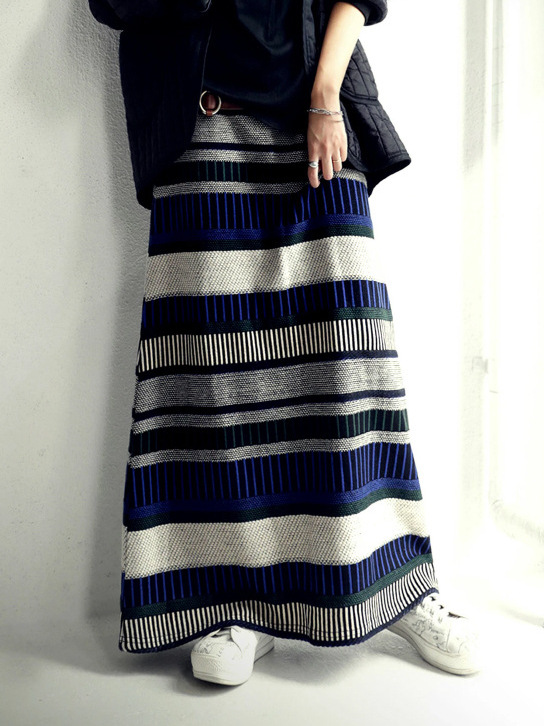 上品さたっぷり 配色 ボーダー 切り替え ハイウエスト Aライン ニット スカート