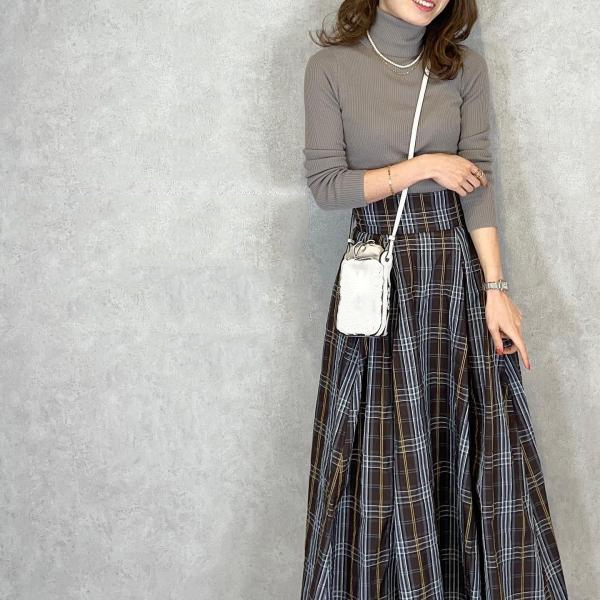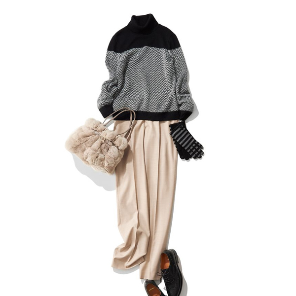 「配色」レギュラーウエスト ハイネック 秋冬 長袖 ナチュラル カジュアルセット