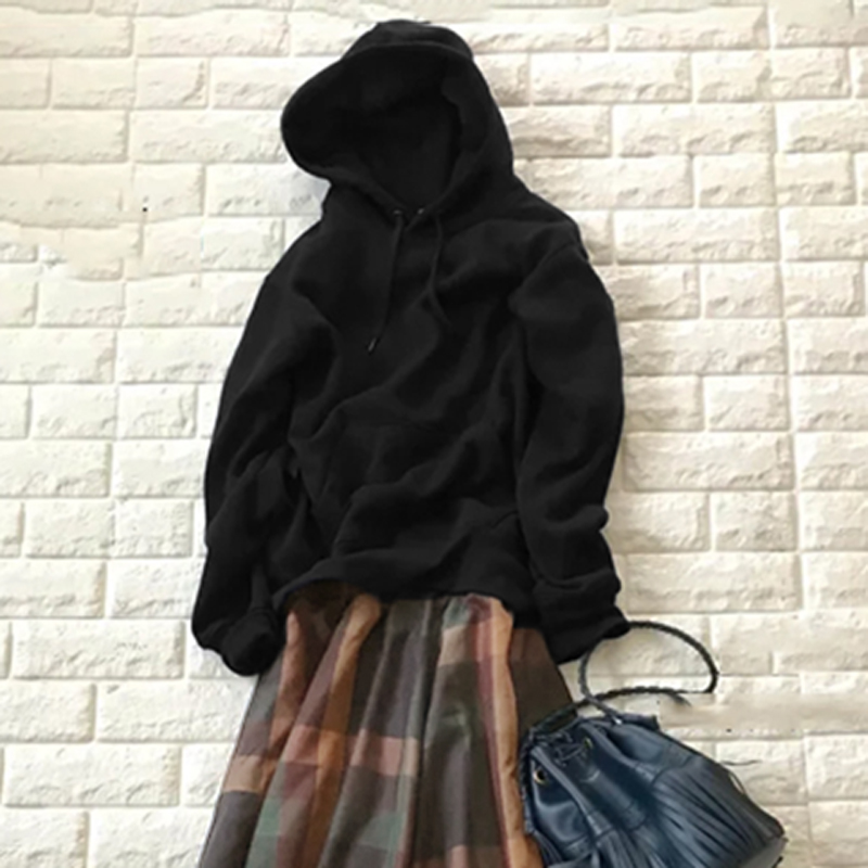 「チェック柄」Aライン フード付き ギャザー ネイビー レギュラーウエスト シンプル カジュアルセット