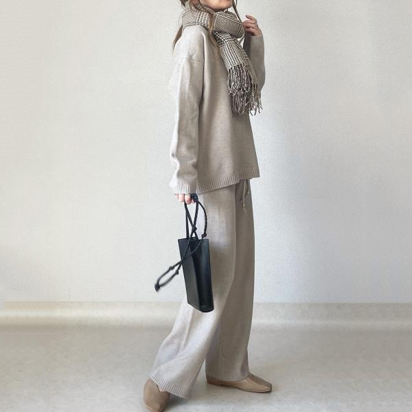 「「超快適」ボウタイ 秋冬 Vネック 長袖 カジュアル ナチュラル 品質のいい新品 ベージュ 無地 カジュアルセット