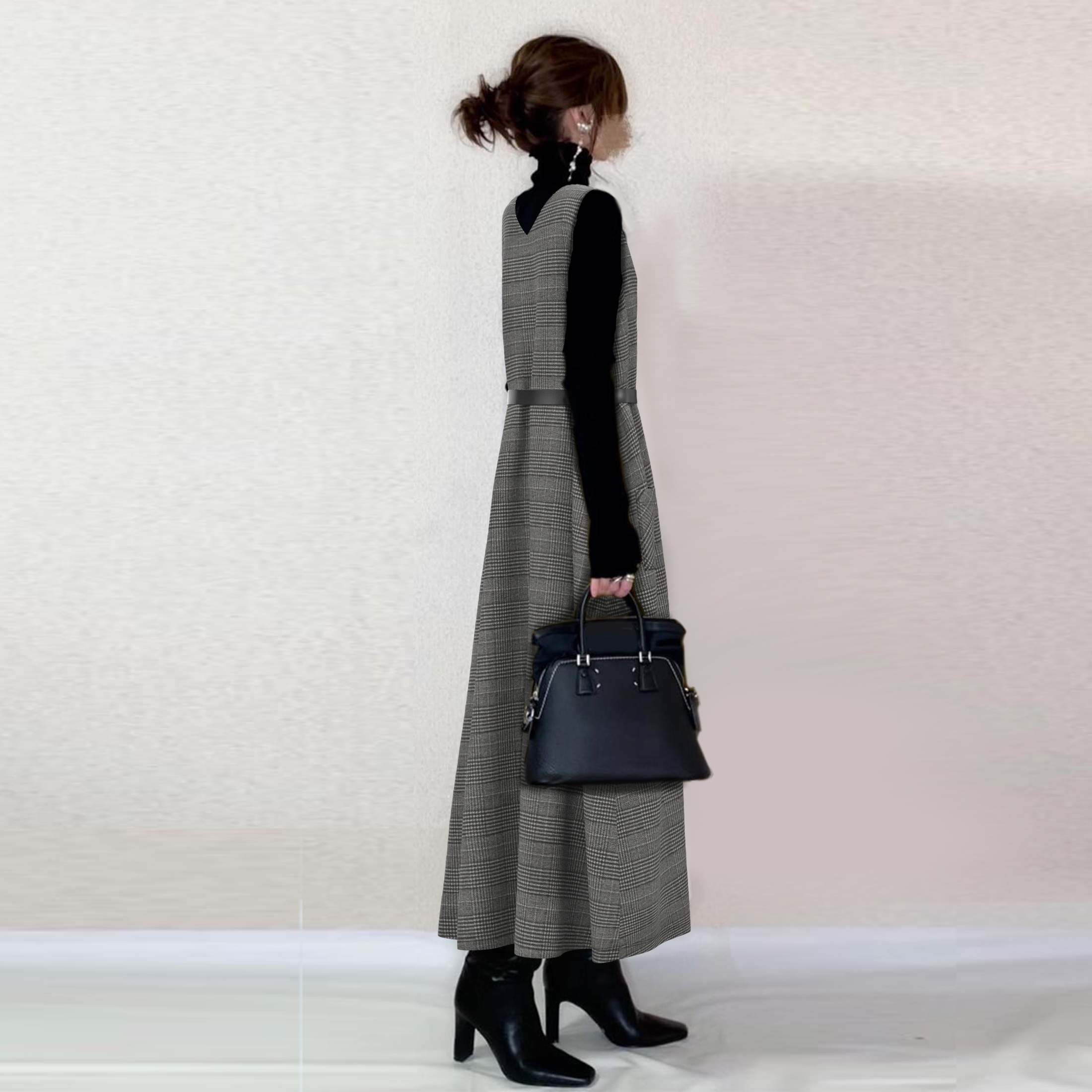 「ベルト付き」 ハイウエスト ギャザー カジュアル チェック柄 カジュアルワンピース