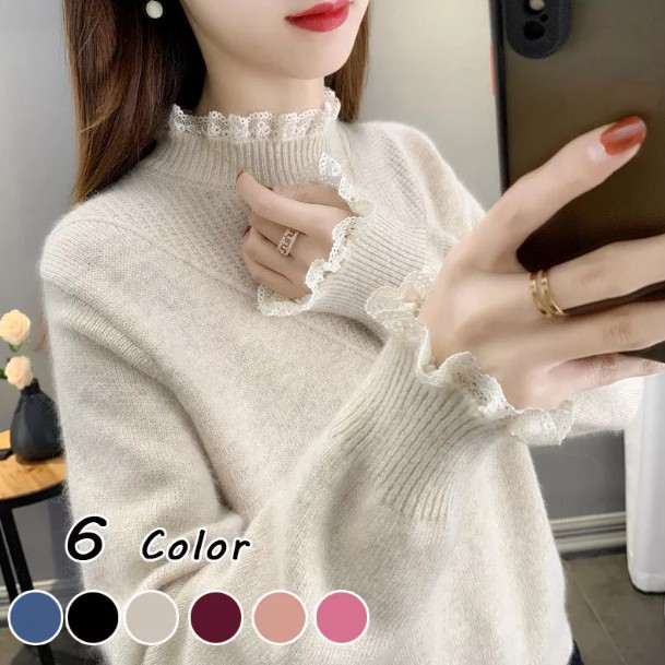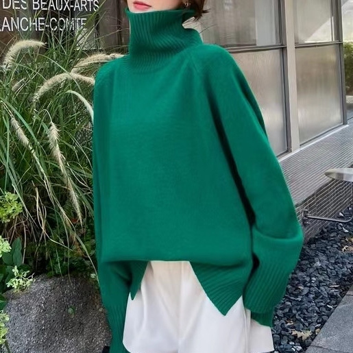 無地ニット長袖シンプル一般スリット一般秋冬ハイネックプルオーバー写真通り20~40代ニット/カットソー