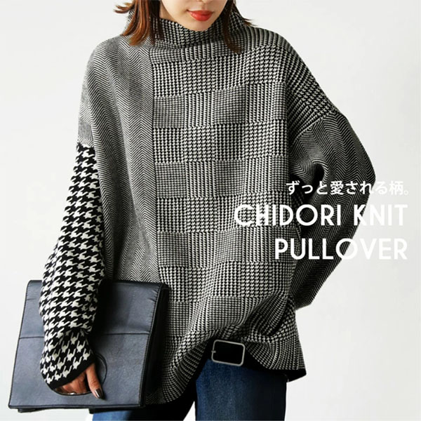 「千鳥格子」 ハーフネック 切り替え 秋冬 ビックシルエット セーター