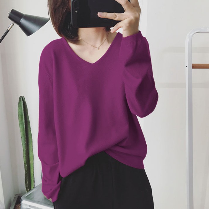 「履き心地抜群」伸縮性あり 柔軟加工 Vネック プルオーバー ニットセーター
