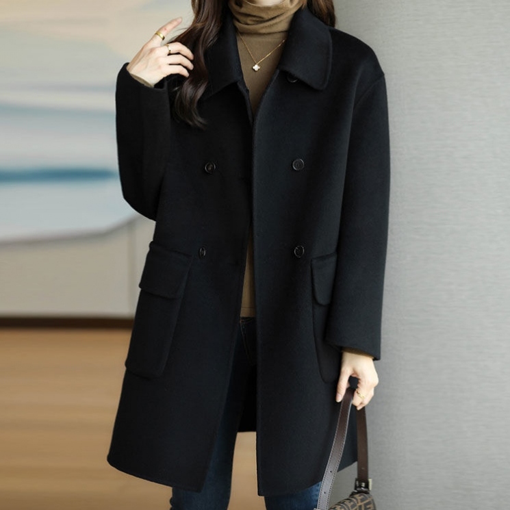 「多色お選び可 」体型をカバー ダブルブレスト 折り襟 ボタン ボタン コート