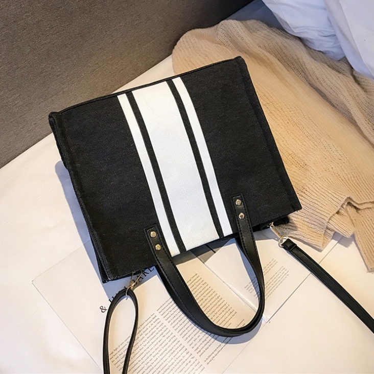 「帆布」マグネット シンプル ハンドバッグ カジュアル 肩掛け 配色 大容量 切り替え ファッション ハンドバック