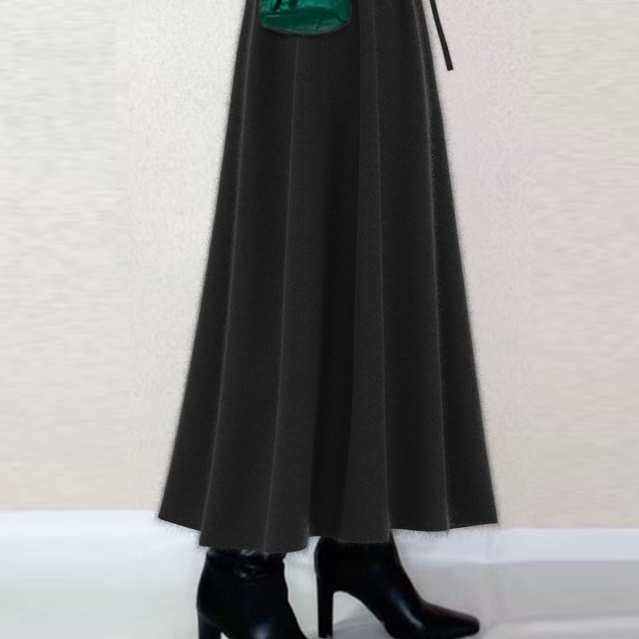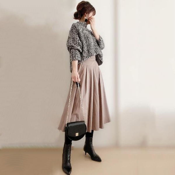 「パフスリーブ」ギャザー 秋冬 ハーフネック ハイウエスト Aライン カジュアル シンプル 無地 カジュアルセット