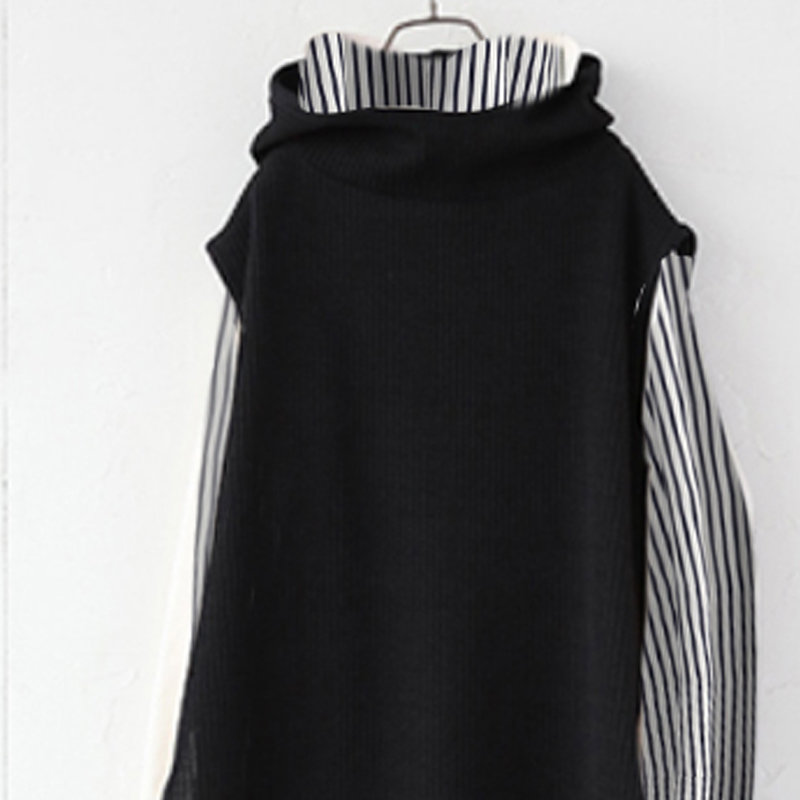 「ストライプ柄」スリット レギュラーウエスト スタンドネック ナチュラル フード付き カジュアルセット