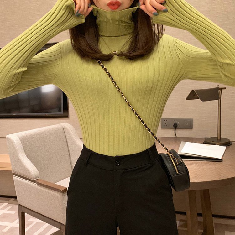 「無地」ハイネック 秋冬 シンプル しっかり素材 軽い着ごこち 弾性のある ニットセーター