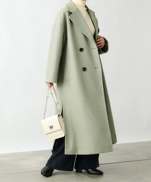 「再入荷予定」「アンプルライン」 スリット ボタン ダブルブレスト 折り襟 ファッション コート