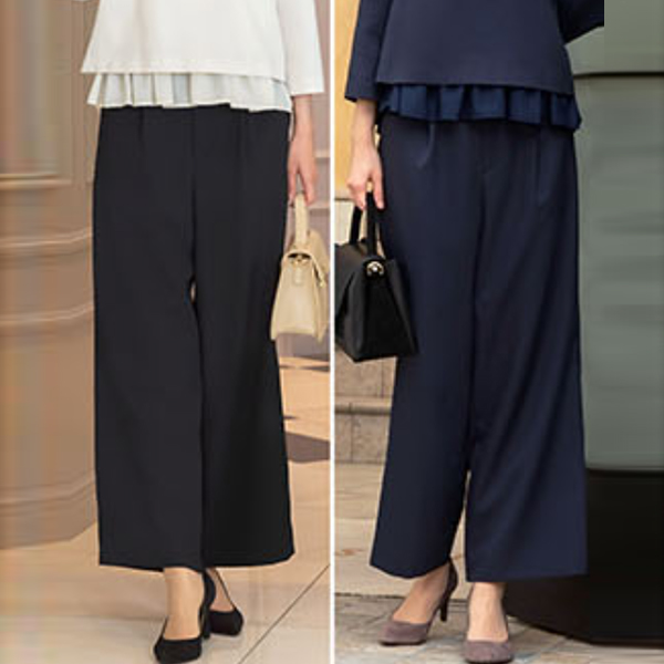 定番シンプル コーディネート自在 無地 着瘦せ ゴム 通勤 ワイドパンツ