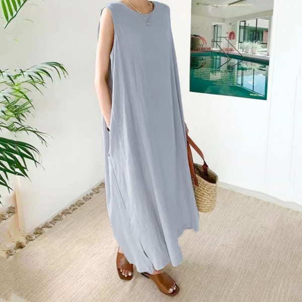 【ワンピース】 定番シンプル スリット ノースリーブ ストレート ロングワンピース